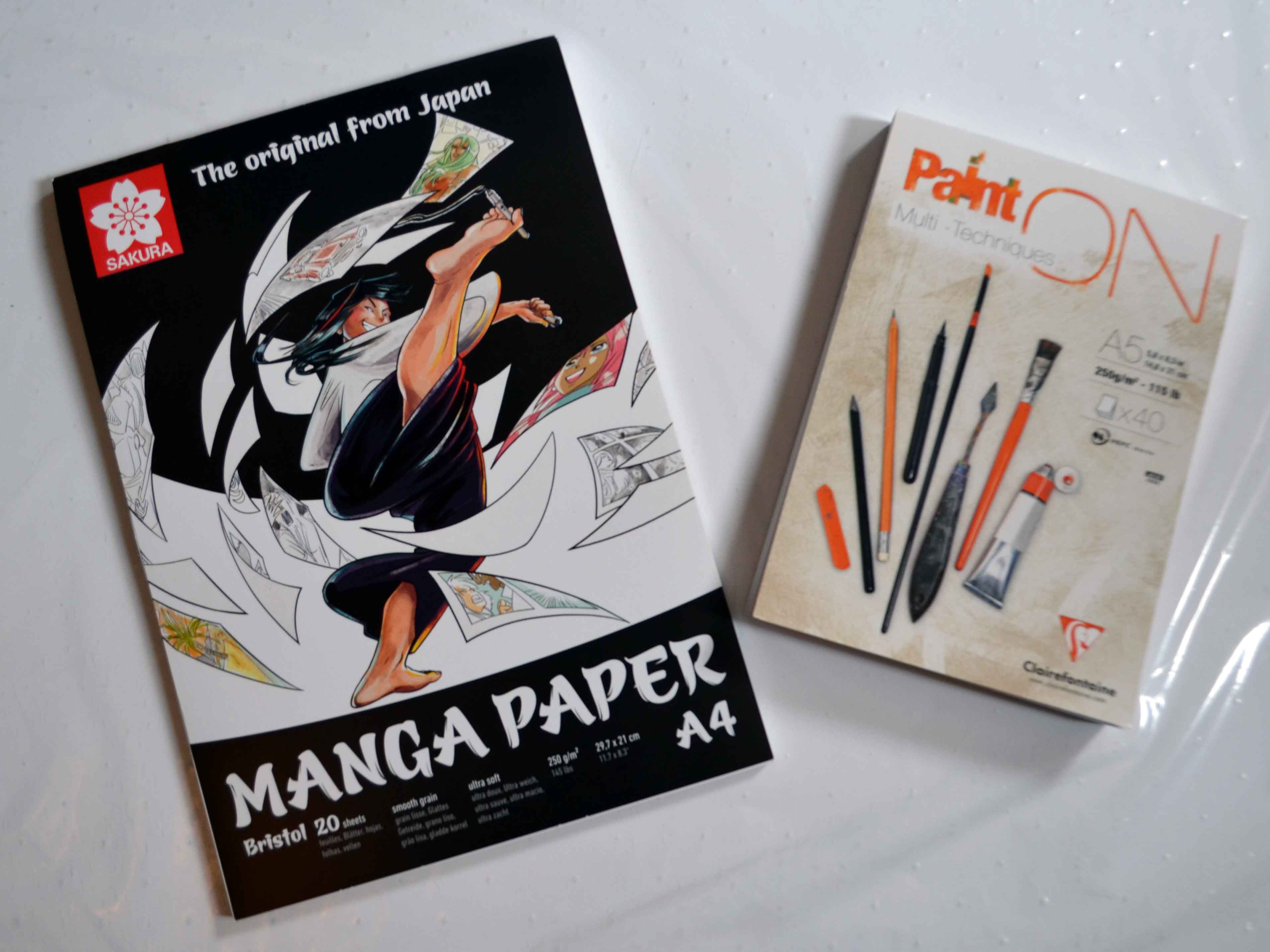 Die Oberfläche des Manga Papiers (links) ist sehr glatt, jene des Clairfontaine-Papiers etwas rauer. Beide eignen sich gut zum Stempeln und Kolorieren – außerdem sind sie schwer genug, um auf Karten gut zu wirken.