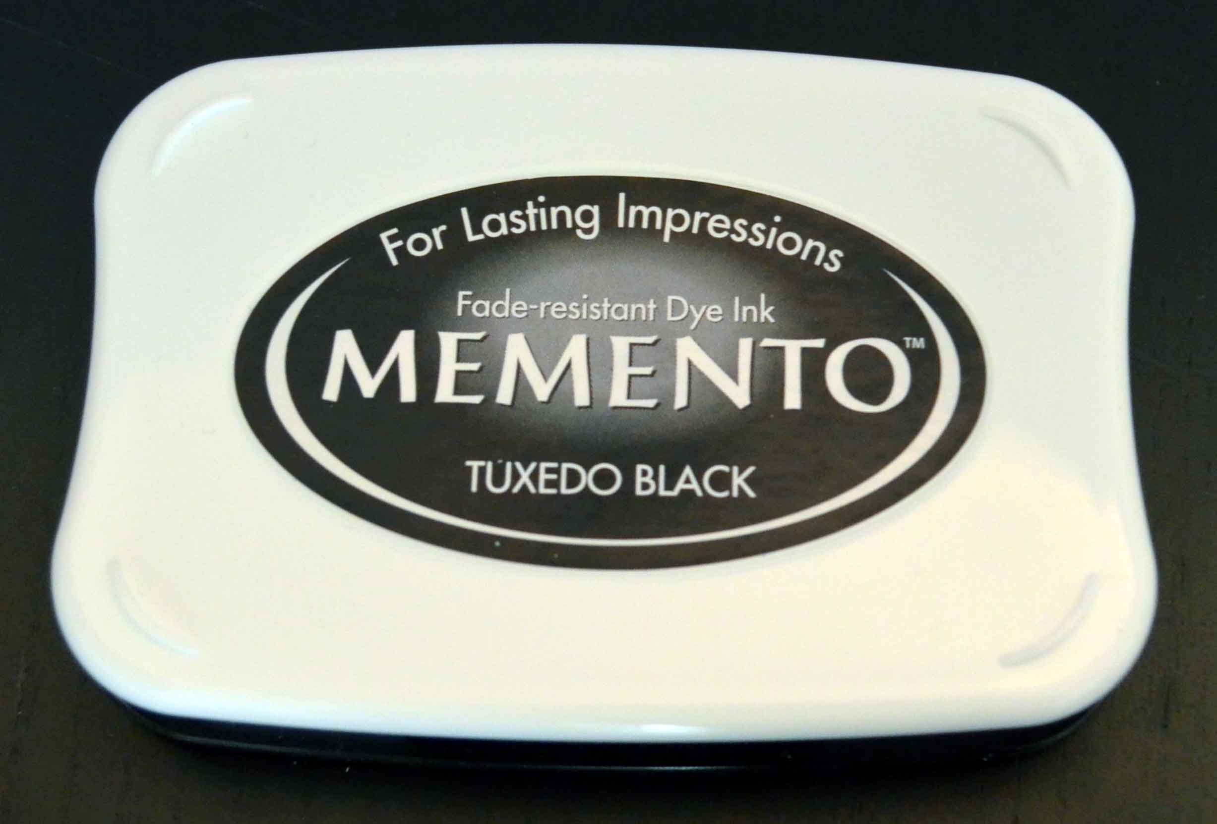 MementoStemelkissen ← Zurück Weiter → Memento in Tuxedo Black (von Tsukineko) – eine beliebte wasserfeste Dye Ink. Memento in Tuxedo Black (von Tsukineko) – eine beliebte wasserfeste Dye Ink.