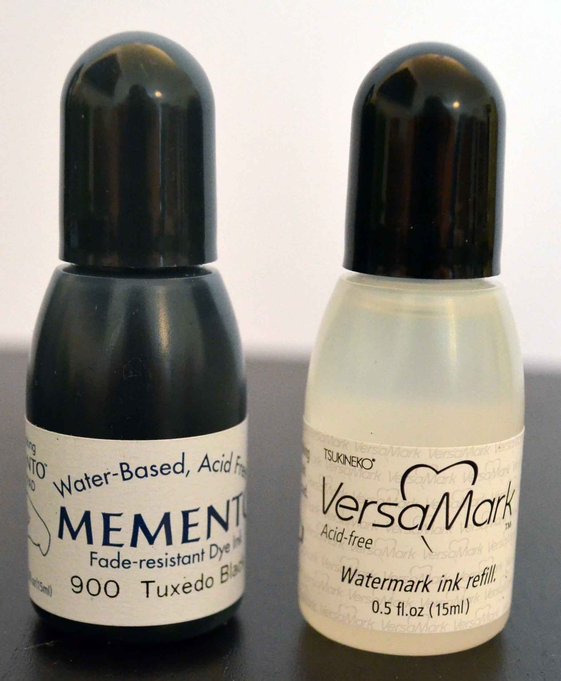 Nur auf dem Foto groß: Re-Inker sind sehr klein, halten aber lange, da ein schon wenig Tinte reicht, um ein Stempelkissen aufzufrischen.